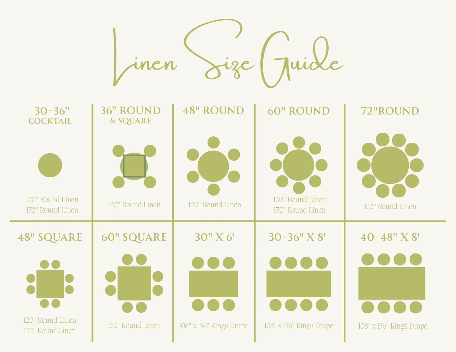 Do not launder or apply any cleaning products to the linens. All cleaning is professionally handled by our team upon return. Each piece is carefully cared for to maintain its quality. Simply shake off any crumbs or confetti and ensure all linens are completely dry before packing them back into the original box or bag. Return instructions will be included with your order, whether you're shipping them back or scheduled for post-event pickup. -